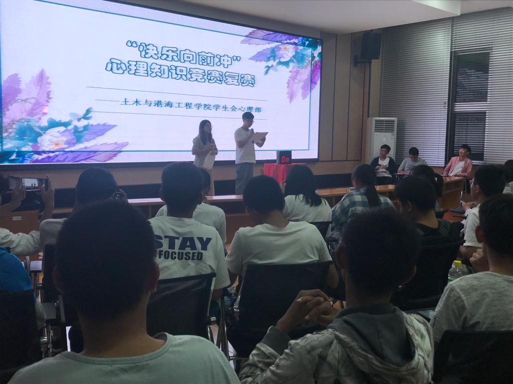 9月18日-30日,土木与港海工程学院“快乐向前冲”心理知识竞赛终于落下帷幕。此次活动是学院“9·20新生心理健康教育宣传月”的系列活动之一,旨在提高大学生的心理健康意识,丰富心理健康知识,提高自我心理调节能力。