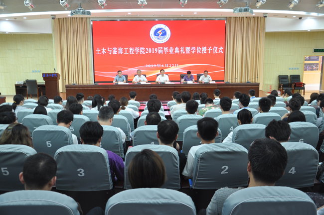 6月22日上午,土木与港海工程学院在会议中心黄海厅举办2019届毕业典礼暨学位授予仪式。校党委副书记史顺良,学院领导尤洪建、张三柱、李明金、宗钟凌及各系主任、毕业班班主任、全体辅导员参加。