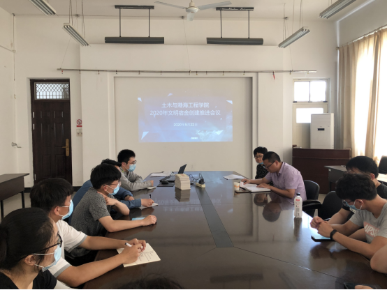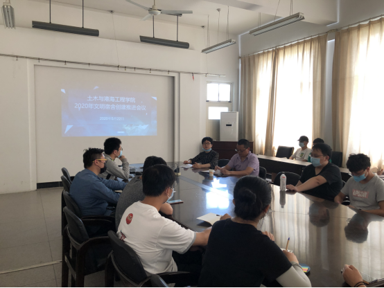 2020年5月22日中午12:30,我院在土木楼三楼会议室召开了2020年度文明宿舍创建工作推进会议,学院党委副书记钱汉珍、学工办主任郭利、辅导员樊洁阳、院权益部以及全体班级生活委员参加会议,会议由辅导员樊洁阳老师主持。