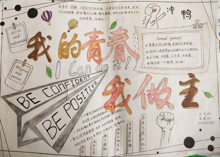 “少年智则国智,少年强则国强”,为积极响应上级和学校对青年人的号召,培养有思想、有担当的青年人,土木与港海工程学院特面向全院同学发起以“我的青春我做主”为主题的手抄报作品征集活动。当今疫情形势严峻,更需要青年人有思想,有担当,将自己的青春把握在自己手上,做主自己的青春和人生,才能为青年人的未来和祖国的未来奠定坚实的基础。