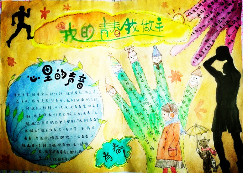 活动通知一发出,全院同学积极响应号召,通过生动的绘图、潇洒的文字、创新的设计,要么是单独创作,要么是几人合作,紧紧围绕“我的青春我做主”这一主题,描绘出一幅幅妙趣横生、新颖独特的手抄报,展现出了青春的美好,表达了新时代青年人的思想觉悟,以丰富多彩的绘画形式展现了新时代青年人青春的飞扬多彩,赞扬了青春活力。