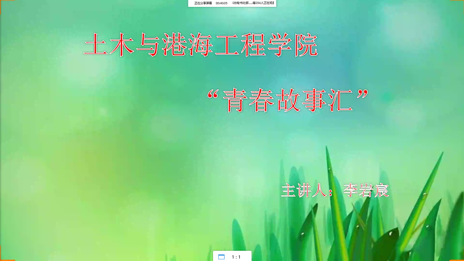 2020年4月27日土木与港海工程学院第一期“青春故事汇”以QQ在线课堂的形式如期举行。此次“青春故事汇”旨在帮助同学们明确大学目标、找准努力方向,并布置各组织的工作安排。主讲人为土木与港海工程学院学生会主席李岩宸同学,土木院各学生组织的全体成员参与学习。