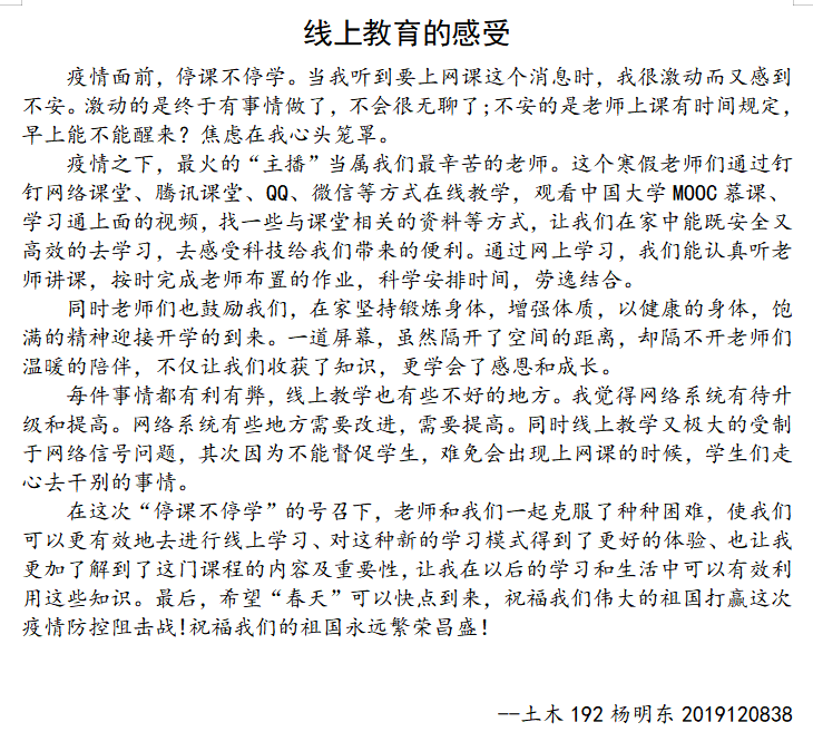 本次“不忘这个春光”线上活动,使得同学们更加珍惜与家人相处的时光,也提供了同学们分享日常家居生活的平台。虽然疫情尚未散尽,但我们都应当笑对生活,健康锻炼,积极学习。
