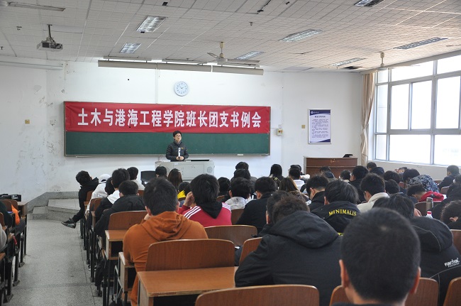 为进一步做好各项学生工作,在新的一年开好局、起好步,3月17日下午,土木与港海工程学院在教学主楼102召开新学期学生干部会议,学院党委副书记钱汉珍、学工办全体辅导员、各班级主要学生干部参加会议。郭利主持会议。
