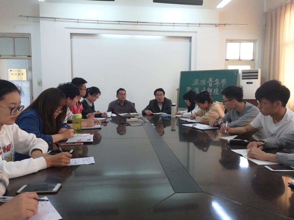 最后,土木与港海工程学院党委书记吴建新就“如何做好青年领袖”以及“如何开展好团委学生会工作”与学生干部进行了探讨,同时勉励学生骨干牢记历史,品读经典,珍惜韶华,展望未来。