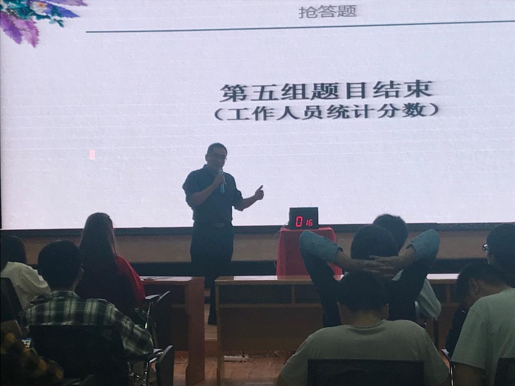 经过两轮激烈的实力比拼及两次同分加时赛,最终决出了第一名国标队,第二名梦之队及单身队,第三名土木小强队、萌鸡小队和敢死队,各个队伍表现优异、实力突出,熟练掌握了心理题库当中的所有相关内容。值得提出的是,在中场休息环节,李明金老师还和卞辉老师分别献唱了一首歌,赢得了场下阵阵的欢呼和掌声。