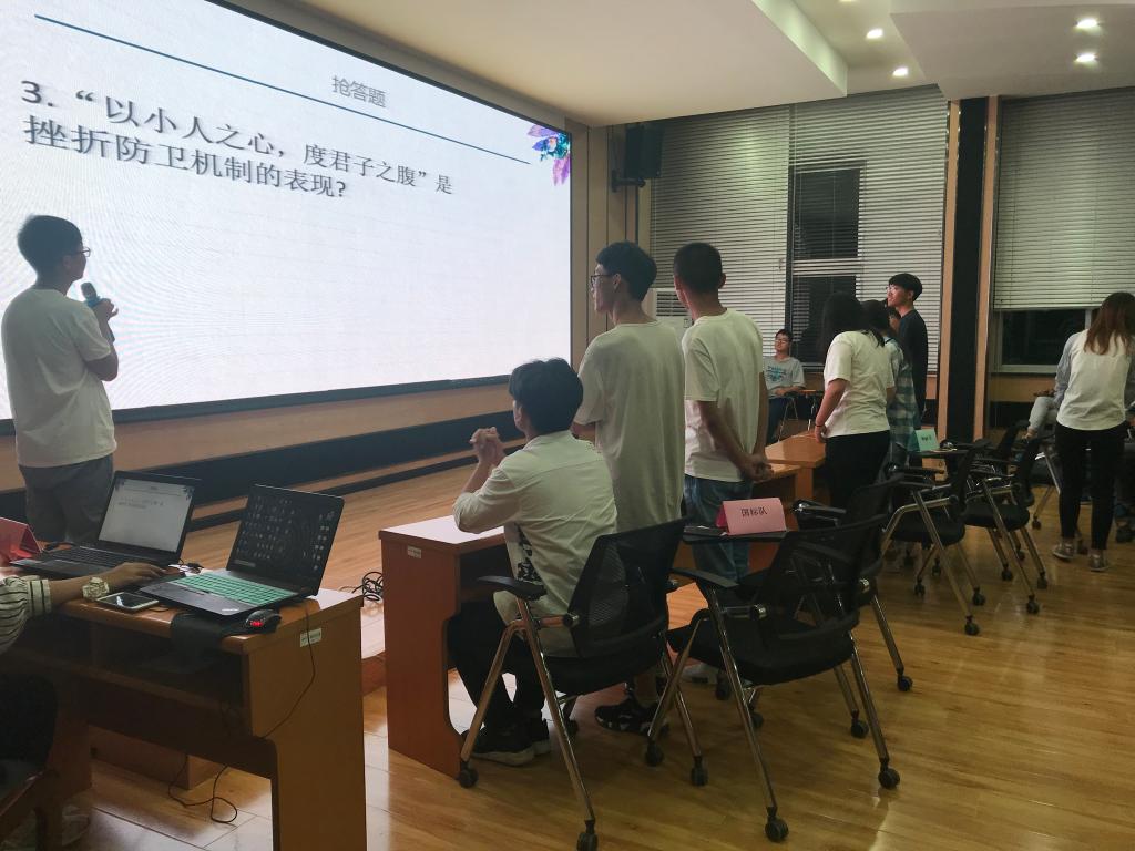 18日晚上6:40,在通灌校区和苍梧校区的教室里,心理知识竞赛初赛以手机软件网上答题的形式进行,在规定时间内未完成答题的同学成绩视为无效,答完题目的同学成绩从高到低进行排名,经过初赛大比拼最终共有45名同学成功闯入复赛。
