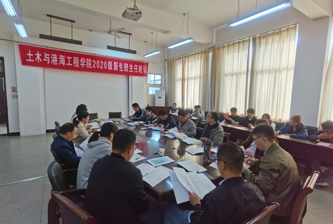 土木与港海工程学院10月7日下午在土木学院会议室举办2020级新生班主任及团支部导生培训,钱汉珍副书记主持,学院党委书记尤洪建、全体新生班主任、全体辅导员、土木194班主任刘凤玲、全体助班助辅参加。