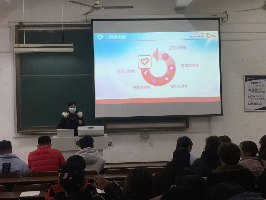 首先,卞老师向大家阐述了志愿者的内涵,志愿者是能够在不为任何物质报酬的情况下,为改进社会而提供服务、贡献个人时间及精神的人;志愿者是不受私人利益驱使、不受法律或政府强制,是基于道义、信念、良知、同情心和责任感而从事公益事业的人或人群。同时卞老师还介绍到,大部分志愿者希望能够“奉献爱心、专业所长、业余时间”,“能够为社会做点有益的事情”。