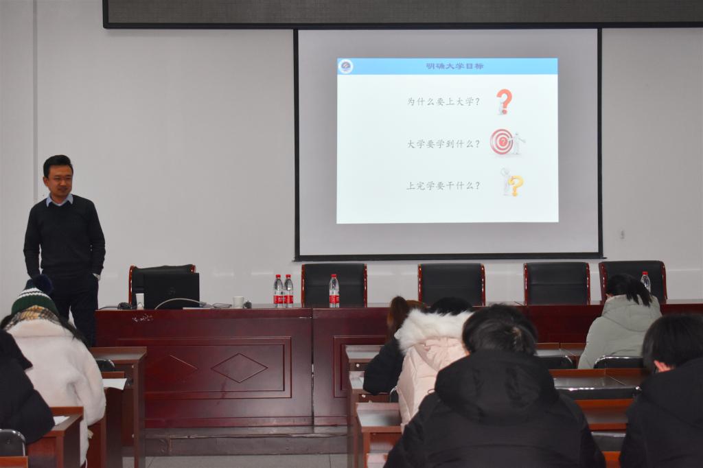 首先,刘博士讲述的第一个部分是明确大学目标,他给同学们提出了几个问题:为什么要上大学?大学要学到什么?上完学要干什么?他深刻分析了同学们将来在考研、就业方面可能会遇到的各种情况和问题,以及如何找到突破点去解决问题,从而在毕业之后走上人生巅峰。