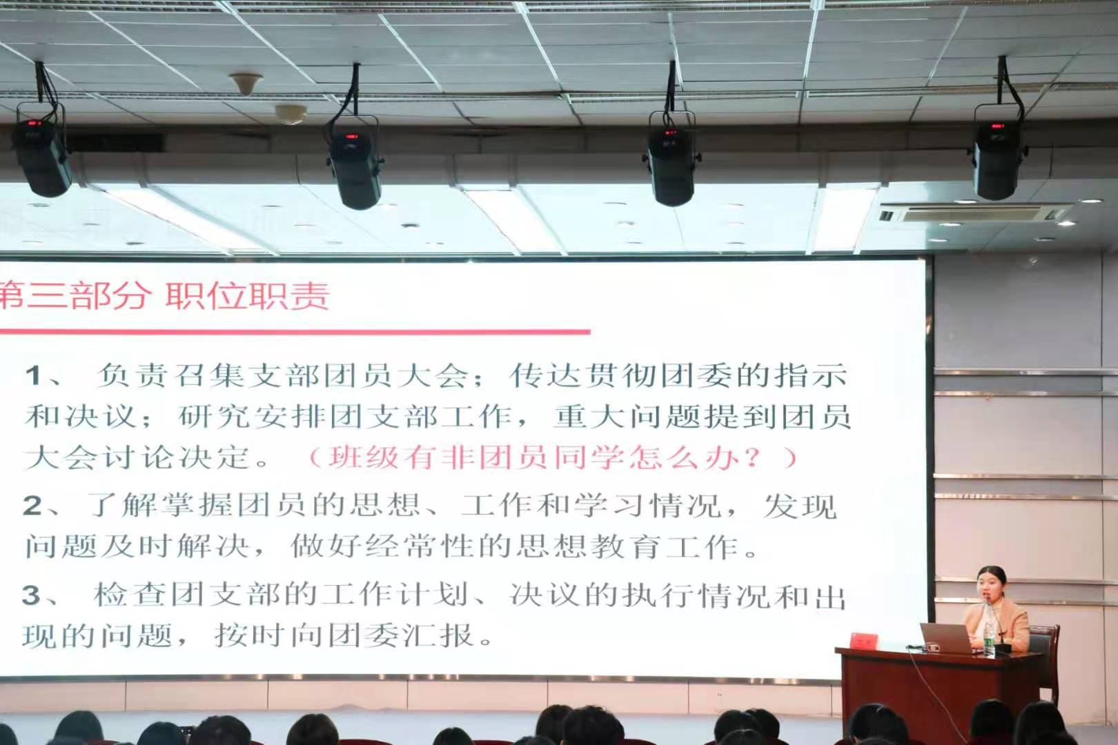 为不断推动基层团组织建设,提高团干理论素质和工作能力,11月13日,校团委于艺术楼报告厅举行江苏海洋大学团支部书记专题培训大会。本次培训会一团课的形式开展,以“团支部的组织结构以及团支书的职责”为主题,由土木与港海工程学院团委副书记卞辉老师主讲,我校19级、20级各支部团支书参与培训。