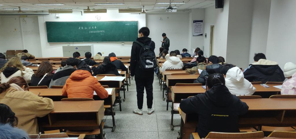 考试结束后,会长安排扫码员给大家扫码,同时让批卷人员开始阅卷。答完卷后参赛人员有的略显紧张,有的自信满满。对于考试结束后的批卷环节,工作人员都保持了客观公正的态度,认真批卷并统计好每位同学的成绩。总的来说,此次建筑知识竞赛进展顺利,圆满完成,进一步增加了同学们对建筑知识的认知和了解,增进了彼此之间的友谊,使同学们感受到了结构与设计爱好者协会这个大家庭的温暖,也给江海大校园增添了无限的活力。