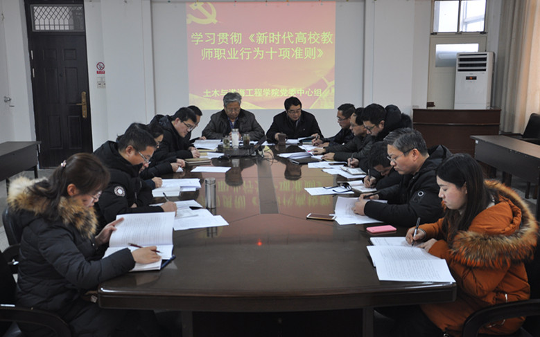 2月27日下午,学院党委组织学习《新时代高校教师职业行为十项准则》,学院党委及班子成员、党支部书记、党政办主任等参加,院党委书记吴建新主持学习活动。