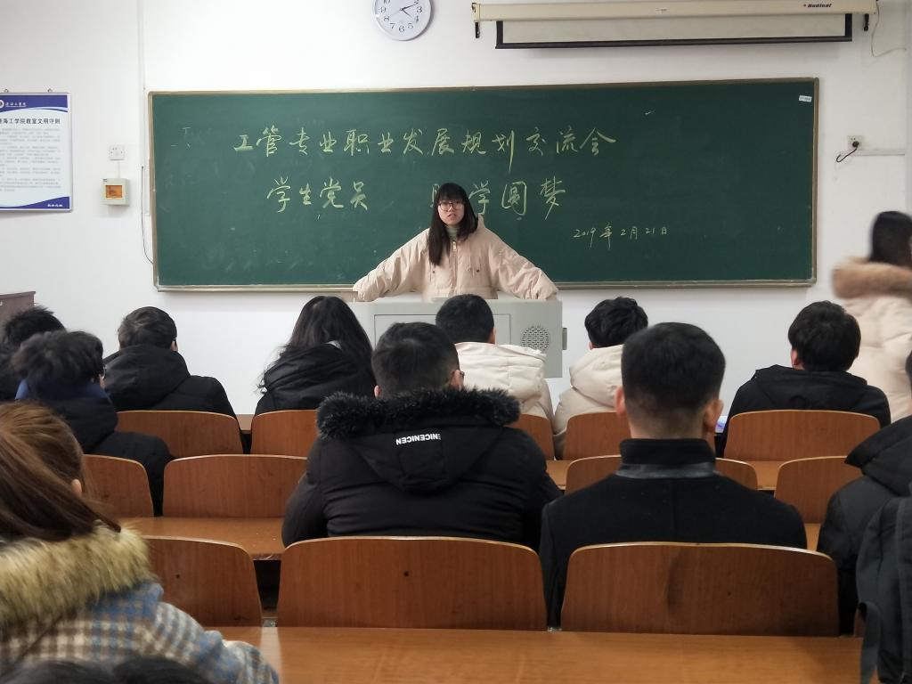 为了帮助学习存在困难、迷茫的学生群体,帮助他们树立正确的学业规划和未来发展目标,以便更好地开展大学的学习与生活,2019年2月21日下午三点四十,土木与港海工程学院在主楼209教室成功召开工程管理专业职业发展规划交流会。会议由卞辉老师主持,工管支部的学生党员代表陈嘉陶、黄乾晟、周奕和胡心悦,以及工管专业大一大二学生自主报名参加了此次会议。