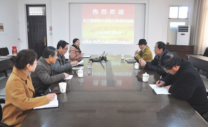 3月11日上午,校关工委常务副主任杜军一行三人来到我院,开展二级学院关工委工作常态化“回头看”调研, 我院关工委成员参加了调研座谈会,院党委书记、关工委主任吴建新汇报了学院关工委的基本情况及验收评估后的工作开展情况。