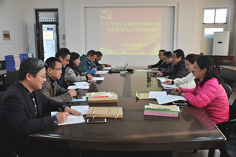 3月26日下午,我院党委开展了2018年度党支部建设工作目标考核。院党委组成考核小组,五个教工党支部、四个学生党支部书记述职,接受考核,院党委书记吴建新主持。