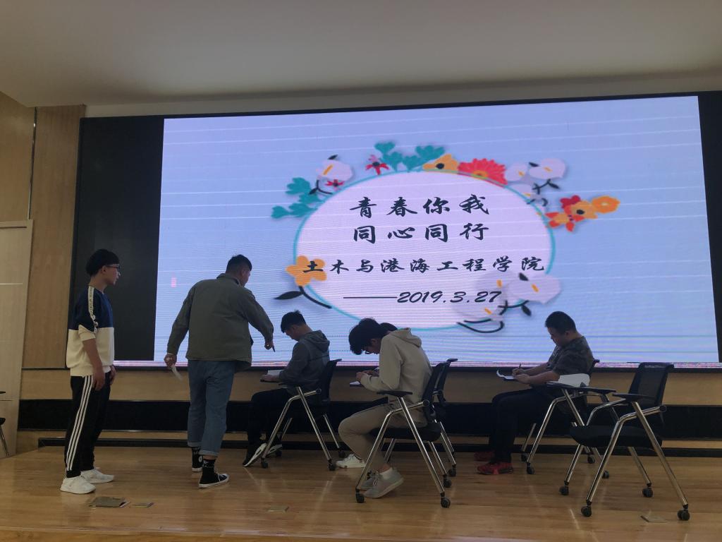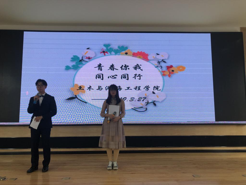 为了促进和谐校园建设,促进广大新生适应校园生活,加强学生之间的合作与交流,增进大一学生之间的同学情谊,3月27日下午3时,通灌校区诚意楼二楼会场气球遍地,到处洋溢着喜悦的气氛,淮海工学院土木与港海工程学院“青春你我,同心同行”班级文艺汇演在这里揭开了序幕。在本次活动中,我们荣幸邀请到土木院卞辉老师作为嘉宾,更有学生会主席团成员、心理部部长等作为评委,共同与我院2018级学生观看了本次盛大的文艺汇演。