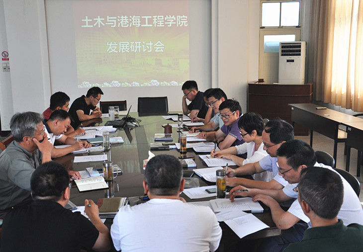 为了顺应江苏海洋大学“争先进位强特色”的发展主旋律,为了进一步集思广益,凝聚共识,7月8日下午,土木与港海工程学院组织召开“凝心聚力谋发展,攻坚克难干事业”主题研讨会,学院领导班子全体成员、教授、学术委员会委员,以及各系(中心、办)负责人近20人参加会议,会议由宗钟凌院长主持。
