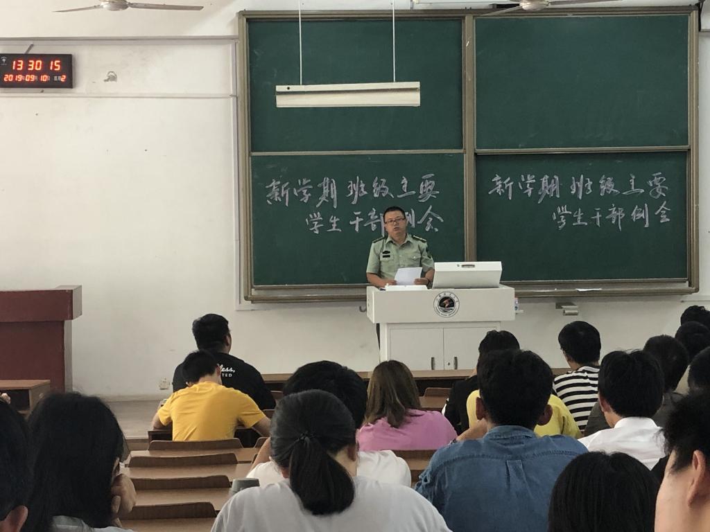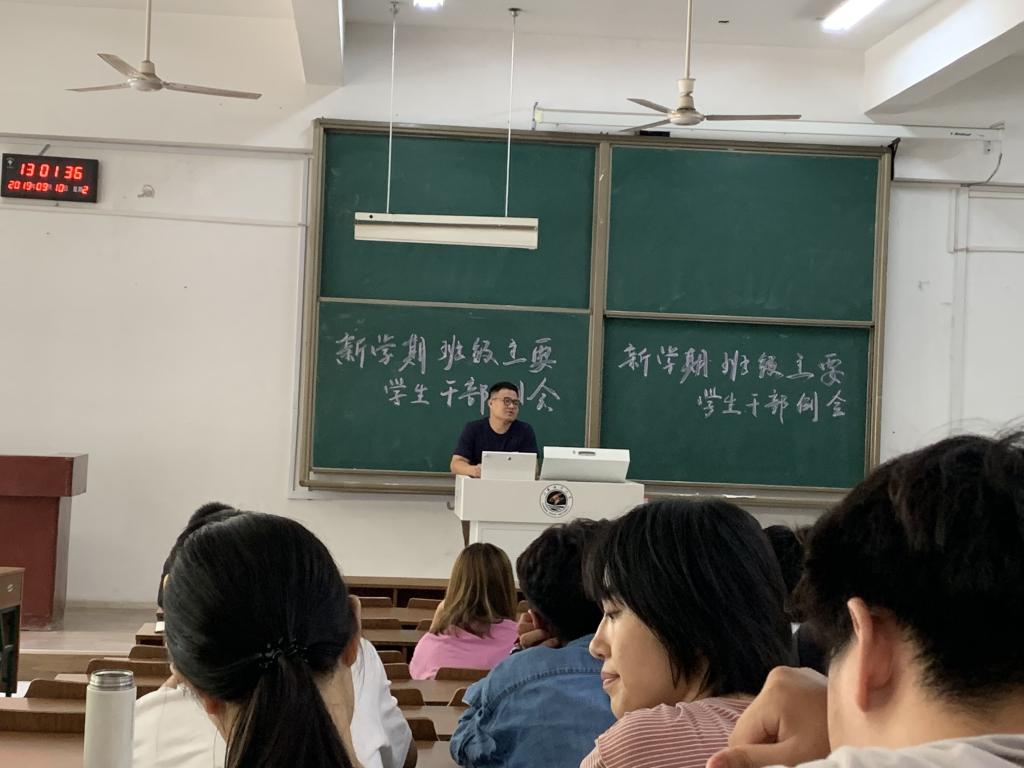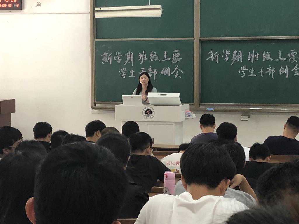 2019年9月10日中午,土木与港海工程学院在文通楼124召开了新学期班级主要学生干部工作会议。辅导员郭利、卞辉和樊洁阳老师,2018级、2017级、2016级各班班长、团支书、学习委员和心理委员共同参加了此次会议。