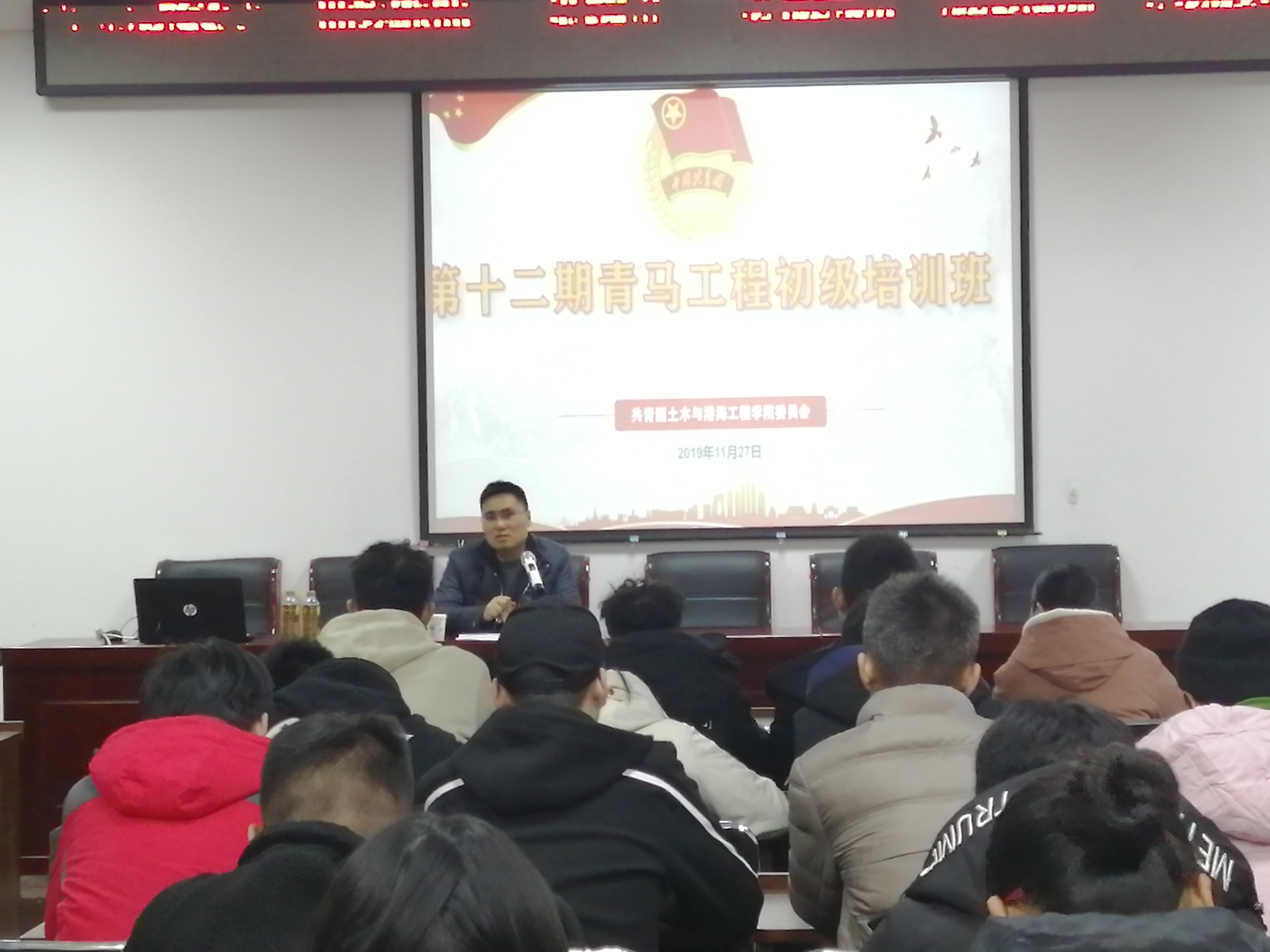 2019年11月27日,我院第十二期青马工程初级培训班第二次培训课程在土木楼南楼207成功举办。本次培训课程由我校原法学院团委副书记,现马克思主义学院党政办主任、副教授崔家新主讲,院团委副书记卞辉负责主持,近60名青马班学员全部参加。