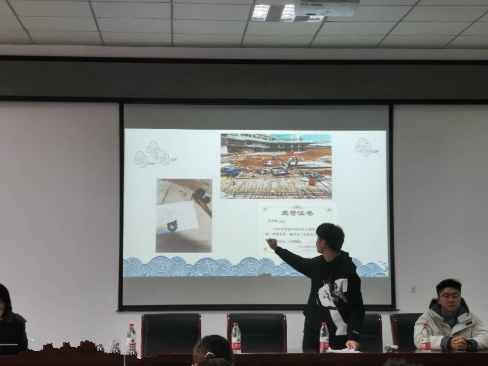 随后,优秀社会实践团支部即土木194班团支部的团支书丁炳文同学又就组织发动本班同学参与暑期社会实践活动的经验教训发表了演讲。丁炳文同学主要就如何发动班级同学参与实践活动和在收集整理社会实践材料时的注意事项做了细致的分享。他着重强调了要充分让同学们意识到暑期社会实践的重要意义,要提前做好充足的策划和准备,对于实践的内容和各项工作要责任到人,充分发挥班级学生干部的榜样带头作用,等等。