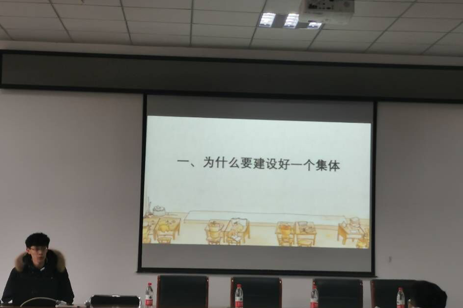 紧接着,前学生会主席、土木173班班长、刚考上省选调生的优秀学生代表李岩宸同学就如何建设一个优秀的班集体这一主题为大家做经验分享。