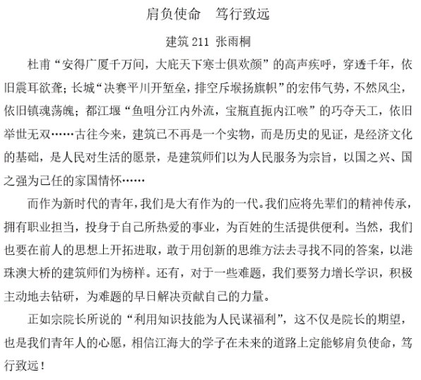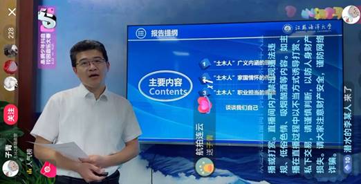 本次直播授课反响很好,386人现场观看、点赞4.8万次。直播结束后,新生们意犹未尽,纷纷发表心得体会,港口211班崔文忻感慨:“清人《巧工记》中有言:‘知者创物,巧者述之守之,世谓之工。’进入土木学院,成为一名工程类专业的学子,我们始于江海大,终于国家建设,我们将不断学习工程类知识,不仅要做‘述者’、‘守者’,更要学做一个‘知者’。”