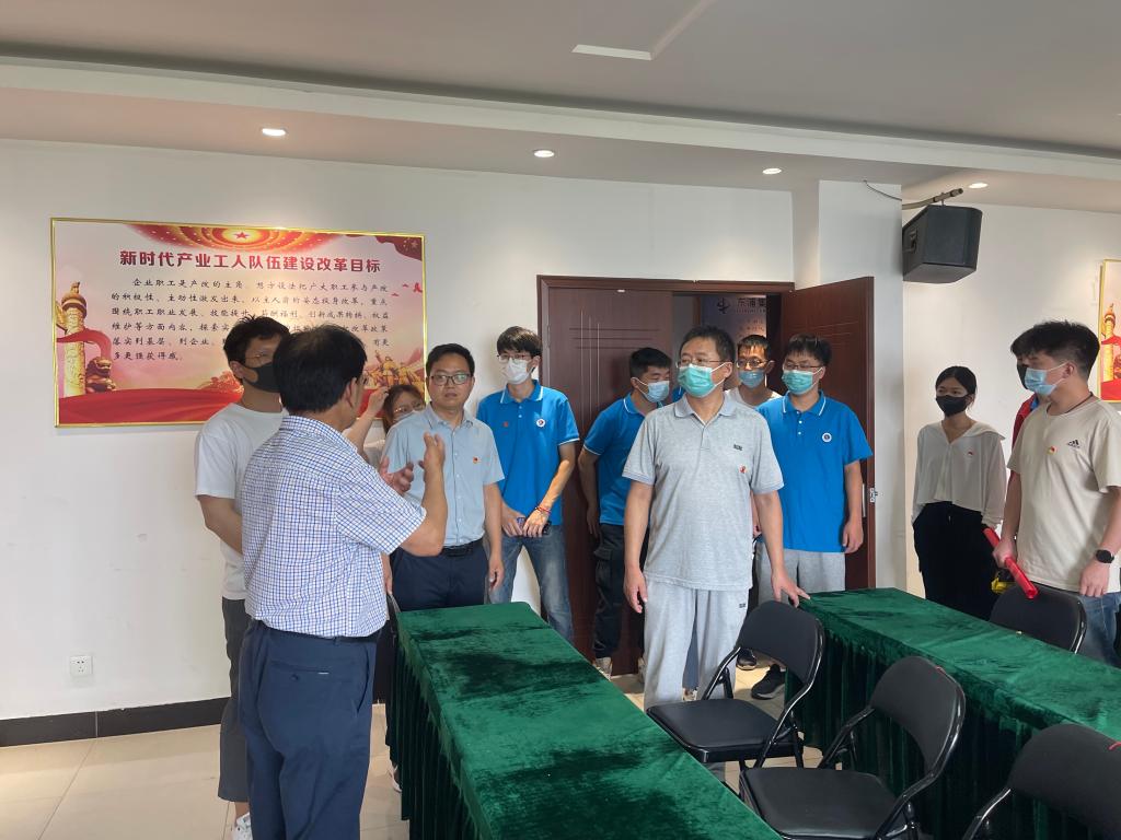 在江苏东浦管桩有限公司党委书记谭学立的带领下,科研团队党支部一行参观了公司的党建展览室—党建阵地、退役军人活动室—戎耀之家、少数民族职工展览室—红石榴家园、党支部书记工作室等多个党建成果,听取了党委书记的党建品牌项目“谭谈党建”介绍,详细了解了公司党建文化。