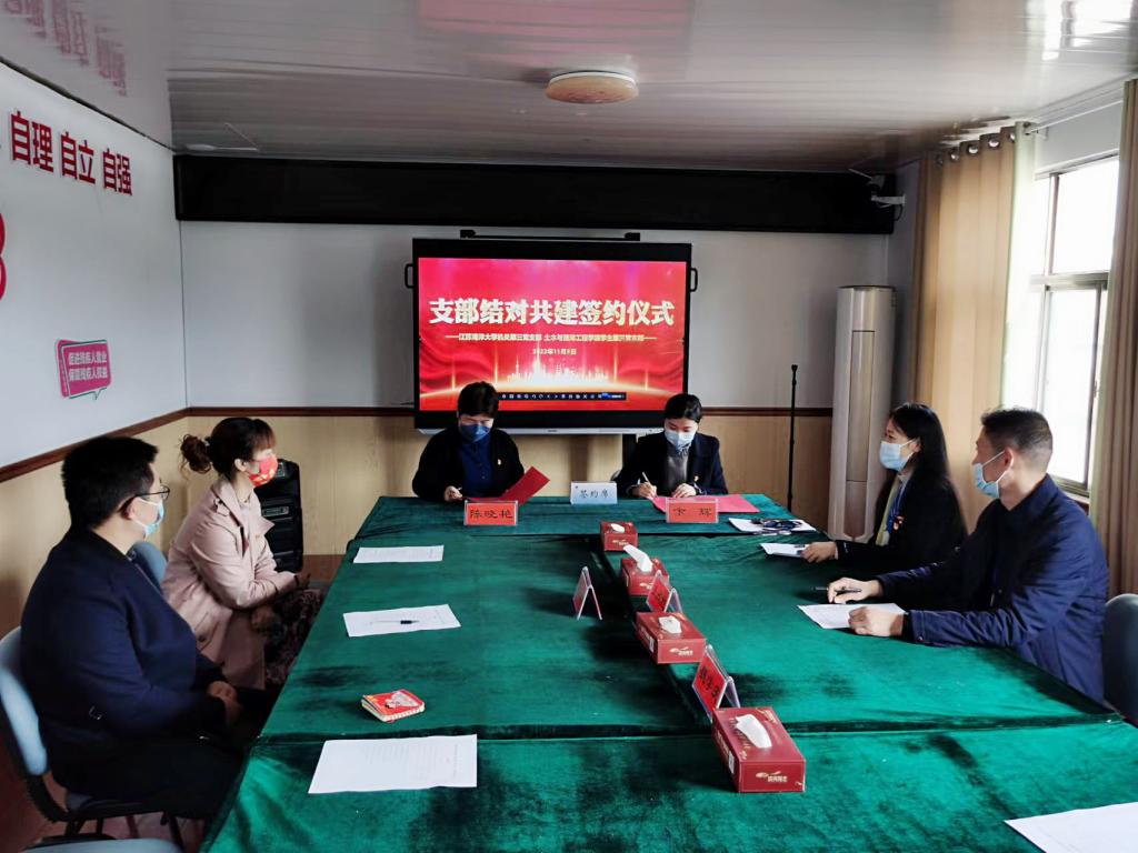 随后,机关党支部书记陈晓艳、土木与港海工程学院学生第三党支部书记卞辉共同签署了支部共建协议书,双方就今后深化合作交流,建立长期、稳定的共建协作关系等达成共识。陈晓艳表示,今后定将进一步深入学生、服务基层,发挥党员先锋作用,热心关注心智障碍者及其家庭等弱势群体,让爱心汇聚海洋,让阳光温暖彩虹桥。