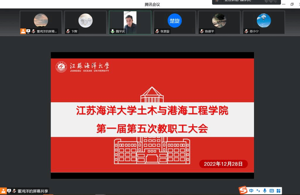 12月28日下午,土木与港海工程学院通过腾讯会议线上召开第一届第五次教职工大会,会议由学院党委副书记、分工会主席魏学庆主持,学院七十名教职工参加了会议。