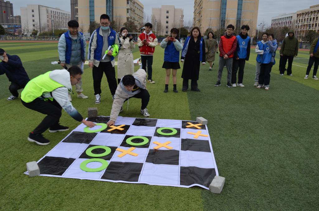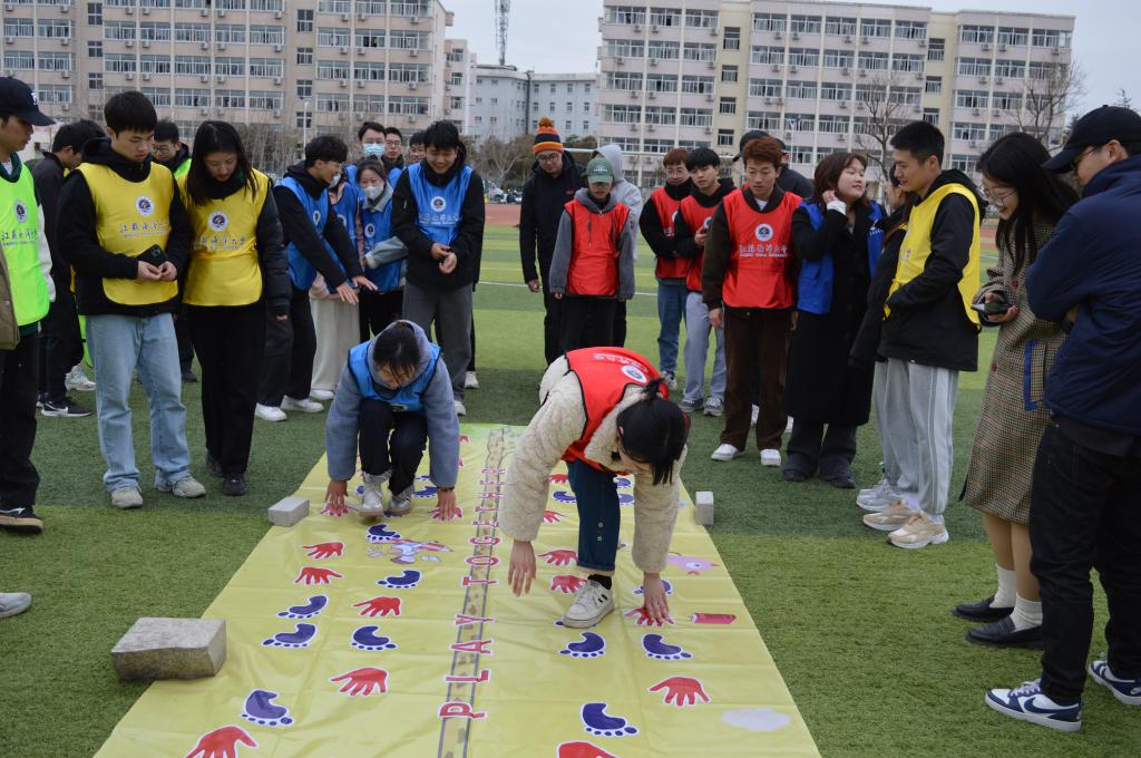 本次活动经过前期的会议研讨和民意调查,最终决定设置“五毛一块”“拔河”“往返跑+四子棋”“两人三足往返跑”“手脚并用”“多人比划猜”共6项趣味拓展活动,丰富的项目让在场的每位师生都乐在其中。