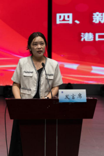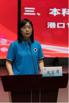港口1231班匡丽洁代表2023级新生发言。作为“新海宝”会尽快适应大学生活,全面提升各方面的能力,不断磨砺自己的意志和品格,努力成长为具有家国情怀、全球视野、创新精神、实践能力的时代新人。
