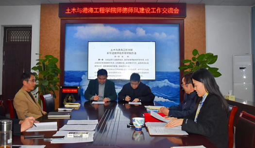 首先,王改红领学《关于加强和改进新时代师德师风建设的意见》;副院长蔡小宁宣读《土木与港海工程学院新引进教师培养导师制办法》。