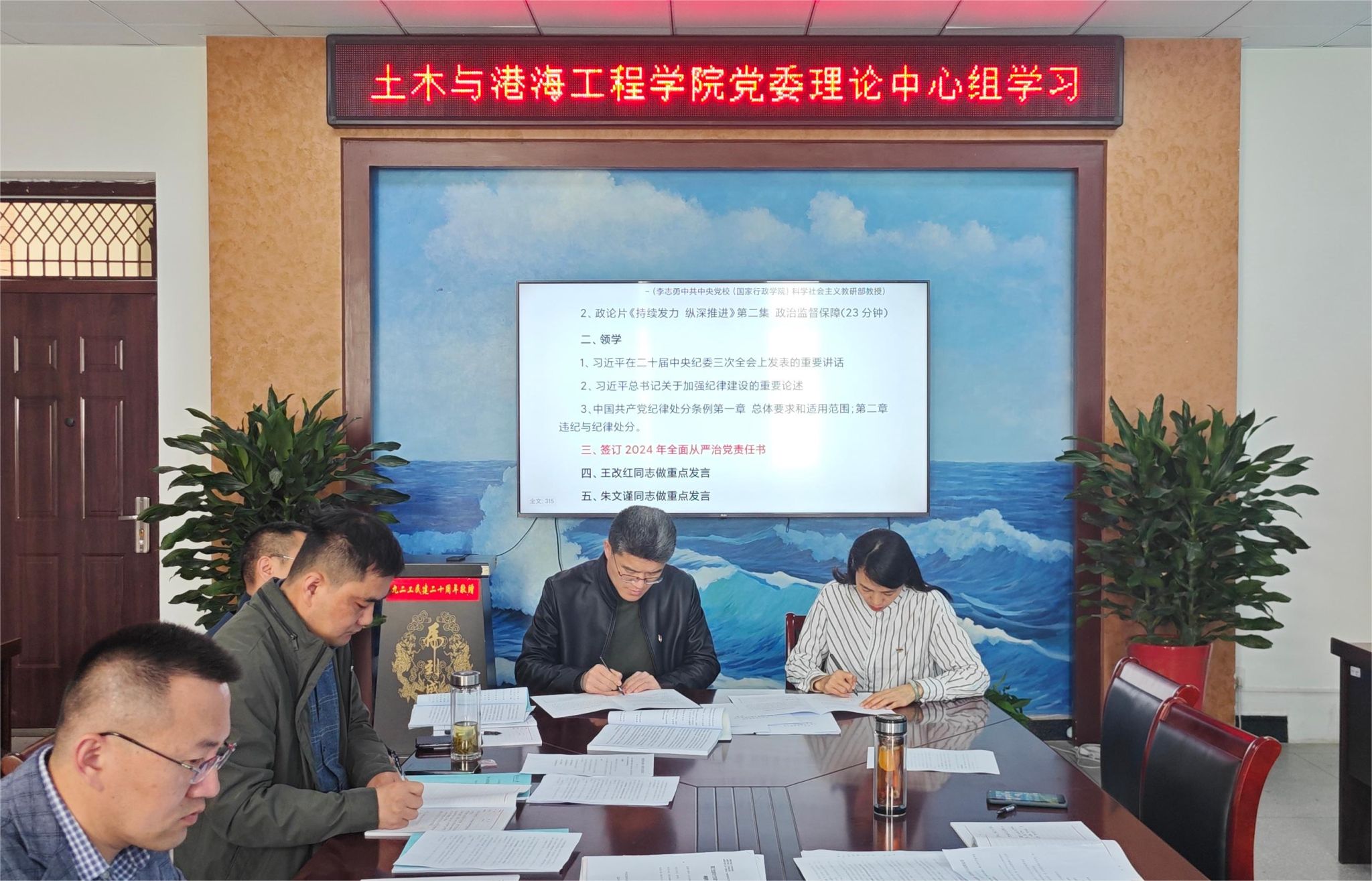 土木与港海工程学院党委十分重视党纪学习教育,做到早谋划、早学习、早布置。学院党委利用党委会、党支部书记例会、教职工大会及时组织学习传达中共中央办公厅关于在全党开展党纪学习教育的通知精神、中共江苏海洋大学委员会关于在全校党员干部中开展党纪学习教育实施方案;学习聚焦新修订的《中国共产党纪律处分条例》、习近平总书记关于党的自我革命的重要思想、习近平总书记关于加强党的纪律建设的重要论述等内容;强化党纪教育,组织观看《持续发力纵深推进》第一集《解决独有难题》;编制《党内法规汇编》《从严治党学习汇编》《集中性党纪学习教育学习参考资料》;将《中国共产党纪律处分条例》纳入学生入党积极分子培训内容,为学院开展好党纪学习教育奠定了良好的基础。