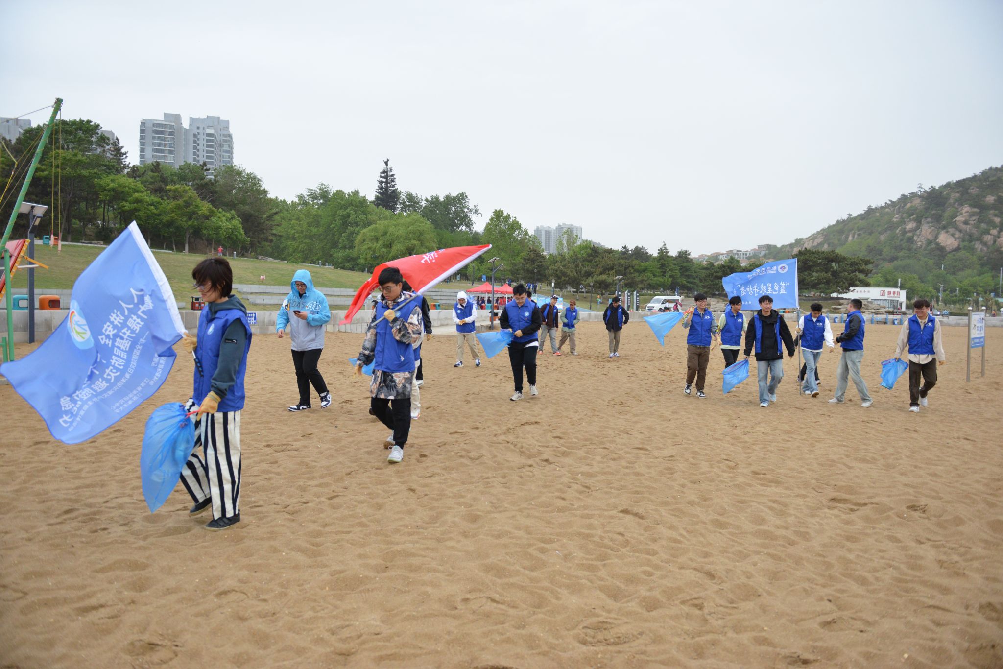 活动中,土木与港海工程学院党委副书记魏学庆带领老师和大学生志愿者积极参与。志愿者向行人分发海洋灾害科普宣传册,并讲解赤潮、海啸、风暴潮等海洋灾害的特点、形成原因与危害,介绍预警报发布方式以及应对措施,增强公众应急避险和自救互救能力。同时,江苏海洋大学“蓝色星球守护者”实践团队还开展了净滩活动。