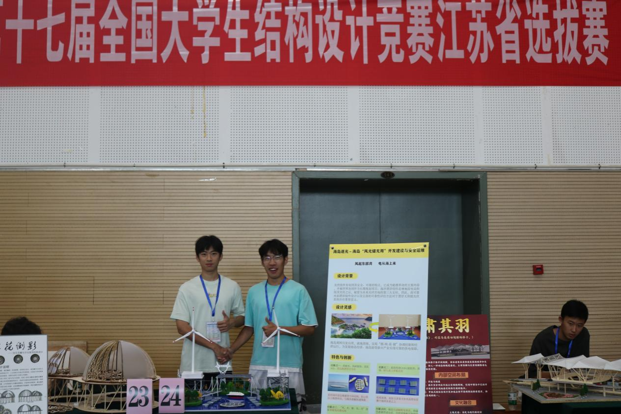 本次比赛,土木与港海工程学院共派出2支代表队参加模型加载组比赛、2支代表队参加模型展示组比赛。在宋明志、骆辉等老师的指导下,经过激烈的比拼,模型加载组获特等奖1项(总冠军),顺利获得2024年第十七届全国大学生结构设计竞赛参赛名额(国赛为A类赛事,江苏省仅5个参赛竞争名额);模型展示组获二等奖1项。在本次比赛中,模型在制作工艺、制作水平、结点设计及连接创新等方面获得与会专家的高度评价。本次总冠军的获得,创我校在该项赛事中的最佳成绩。