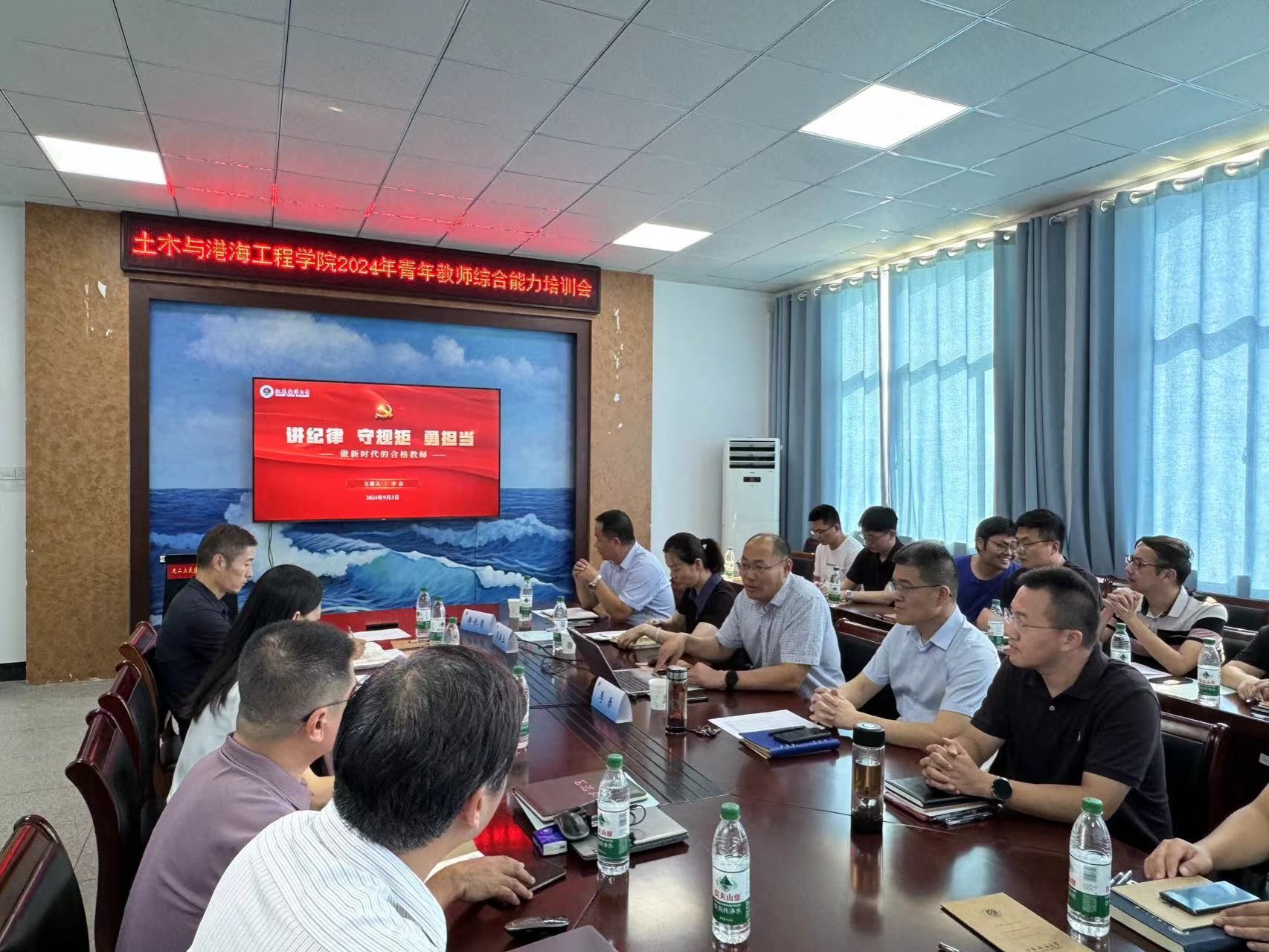 为提高学院新入职教师的综合素质,强化底线思维,9月3日下午,土木与港海工程学院党委举办2024年青年教师综合能力培训会。会议由学院党委书记王改红主持。2021-2024年新引进青年教师及其导师参加了培训。