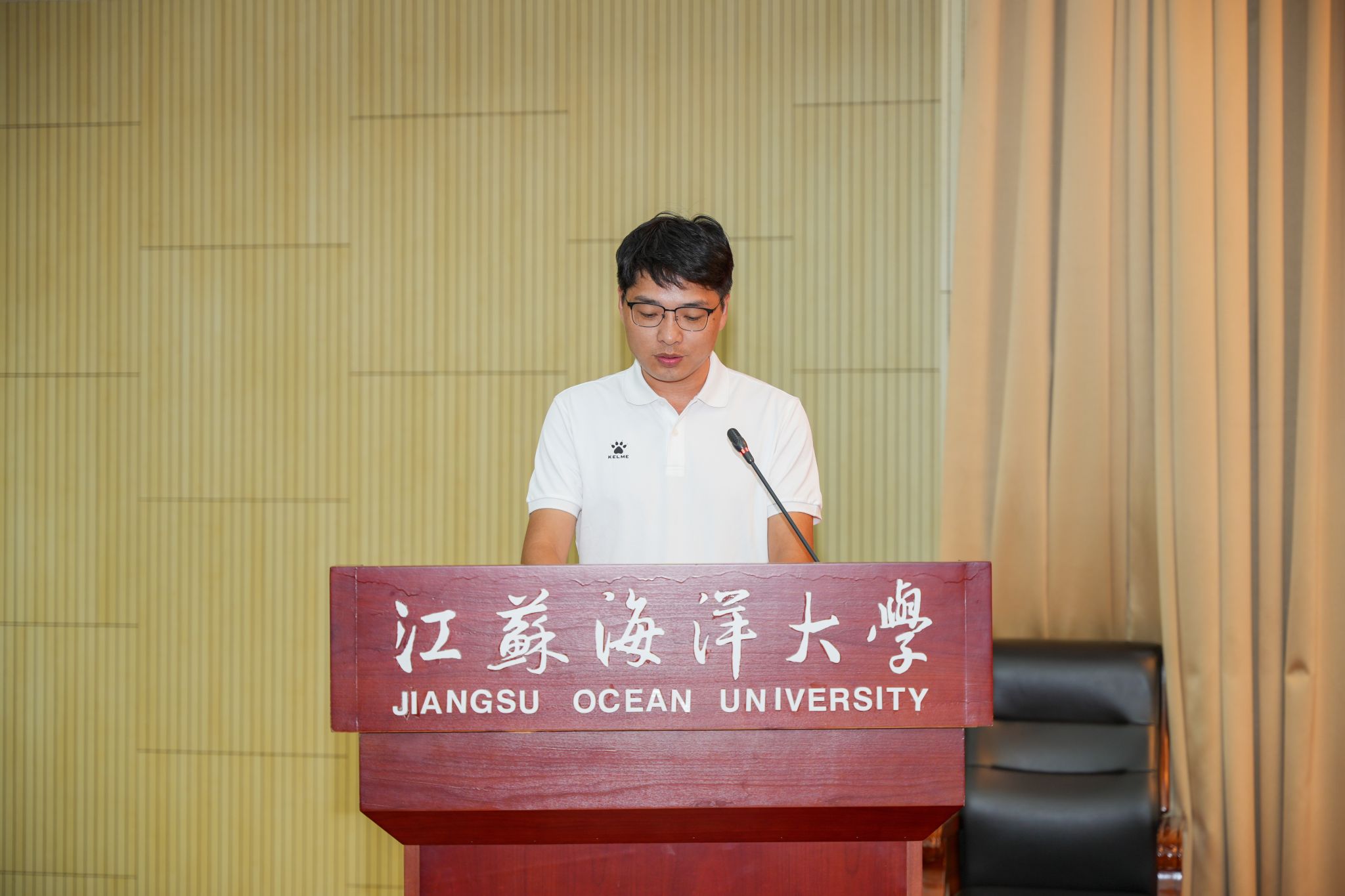 接着,土木1241班班主任浩文明作为新生班主任代表上台发言,他表示会与同学们并肩同行,共同面对学习上的困难与挑战,并建议同学们学会自律,将主要精力投入学习;积极参与大学活动,结交益友;锤炼意志,成为有担当、有责任感的新时代青年。青年教师骆辉作为学院教师代表向新生们建议,在世界遭遇百年变局,国际形势纷繁复杂的当下,应当勤奋努力,积累扎实,作风踏实;应当心系天下,学有所用,学有所得。他强调大学之学,不只是专业之学、技能之学,更是修养之学、境界之学,勉励新生们坚持江海大精神,牢记老师教诲,用专业积累、阅读积累和实践积累,在更广阔的空间扎根祖国大地,更好地建设中国。