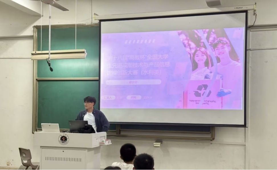 启动会上来自三个类别的指导教师分别向大家介绍了成图大赛不同类别的参赛流程。建筑类指导教师黄德龙首先向大家介绍了先进成图大赛建筑类各赛道、华东区大学生CAD应用技能大赛(土木建筑类)的相关参赛内容,并分享了建筑类往届同学的得奖情况、优秀作品案例、从简单到复杂的训练获奖过程、指导教师团队以及培训时间和选拔流程。随后,道桥类的指导教师骆辉向大家详细的说明了道桥类各赛道的比赛规则、比赛流程,介绍了道桥类的比赛软件,分享了道桥类优秀作品案例、往届道桥类成图技术赛道的试题、未来的发展前景、培训时间和选拔流程。最后,成图大赛水利类的指导教师苏腾向大家介绍了成图大赛水利类的比赛规则、比赛优势、培训流程、招新对象和未来的发展前景。启动会的成功召开调动了同学们的参赛热情,也让同学们对先进成图大赛有了进一步的认识。