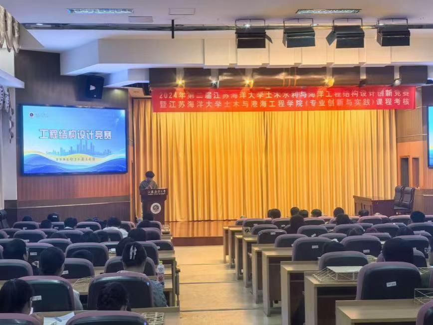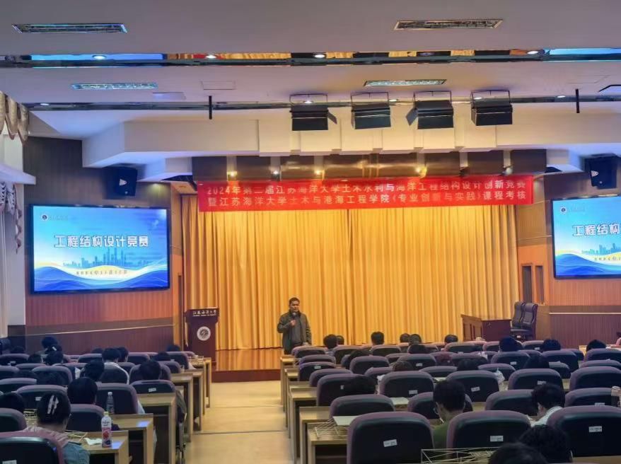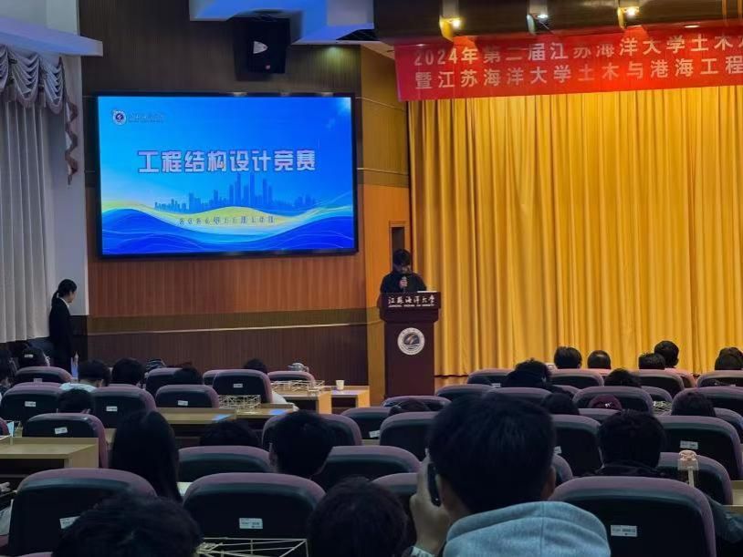 11月16日,江苏海洋大学第十届科技节-第二届土木水利与海洋工程结构创新设计趣味竞赛在苍梧校区文博楼多功能报告厅顺利举行。本次比赛由教务处、校团委主办,土木与港海工程学院团委、结构与设计爱好者协会承办,旨在进一步响应党的二十大提出的科教兴国战略,将国家战略融入人才培养全过程,搭建大学生创新实践平台,培养科学精神和强国意识。土木与港海工程学院副院长蔡小宁、土木工程系宋明志老师、骆辉老师、马甲宽老师出席大赛开幕式,来自多个学院、不同专业的163组共计450名左右的青年学子报名参赛。