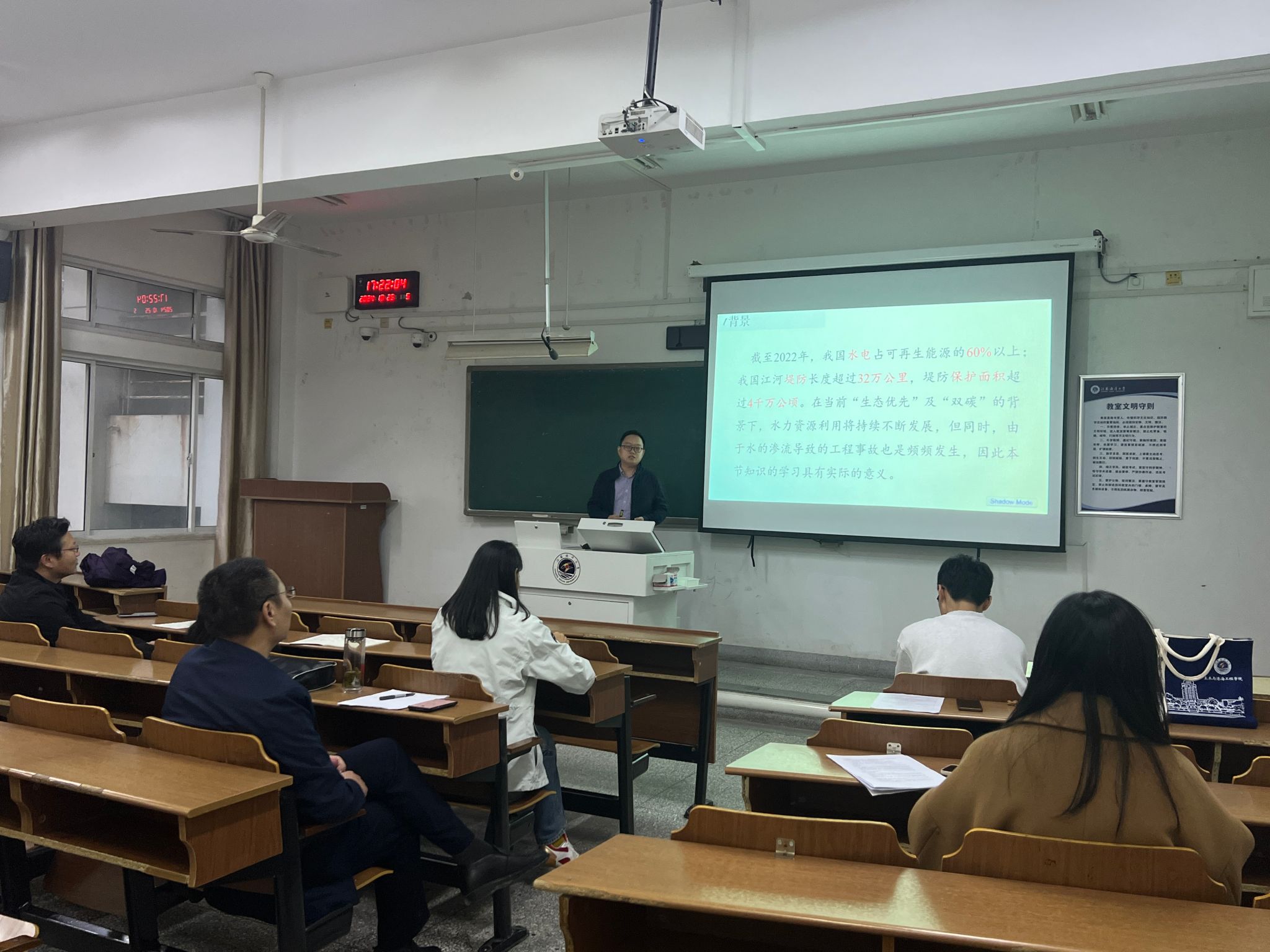 为提升教师教育教学能力及水平,做好江苏省工程管理专业青年教师授课比赛准备工作,土木与港海工程学院分别于10月21日、10月25日在文通楼开展了青年教师讲课比赛和备赛磨课活动。土木与港海工程学院党委书记王改红、副院长蔡小宁及工程管理系骨干教师参加了本次活动。