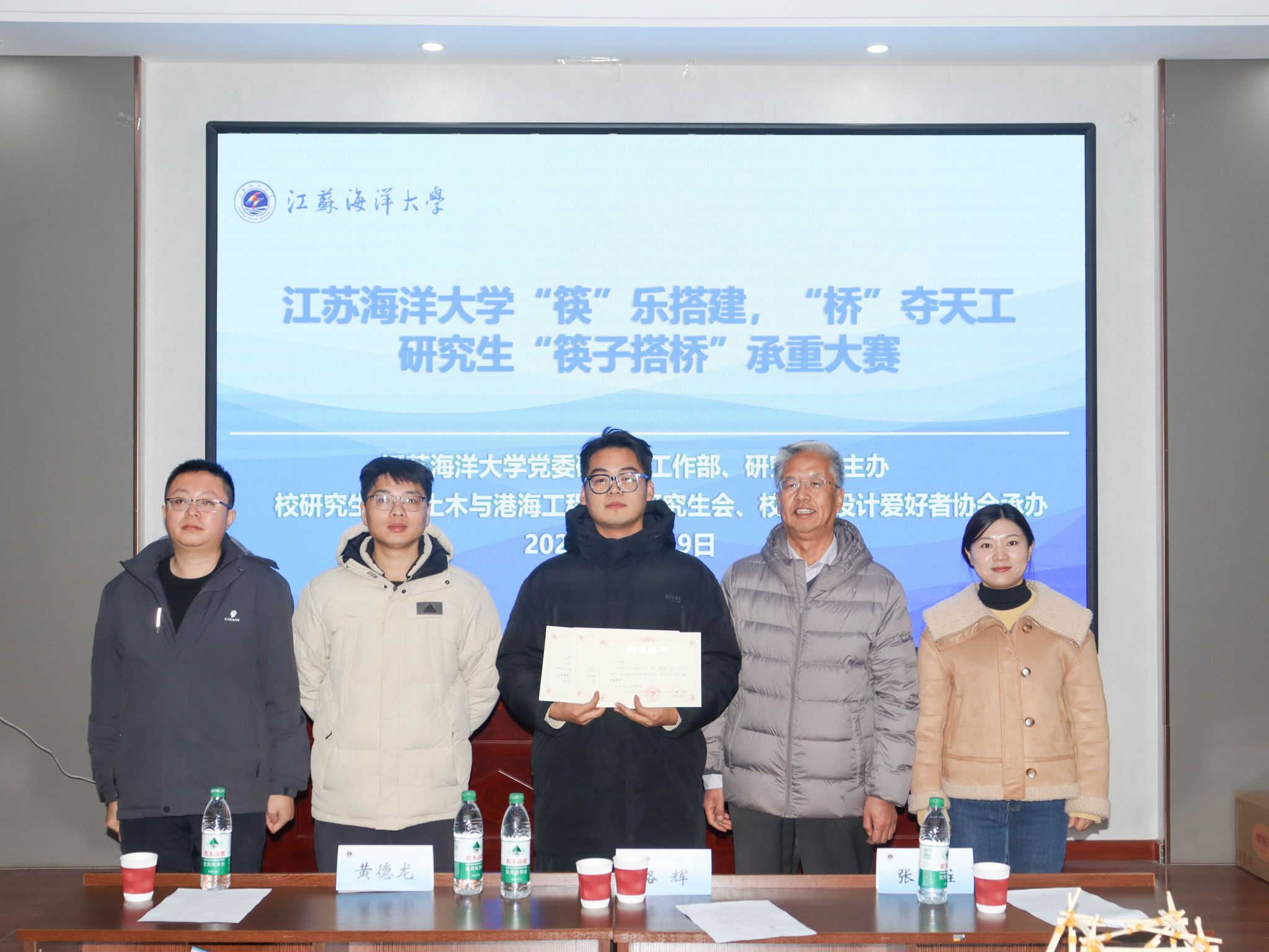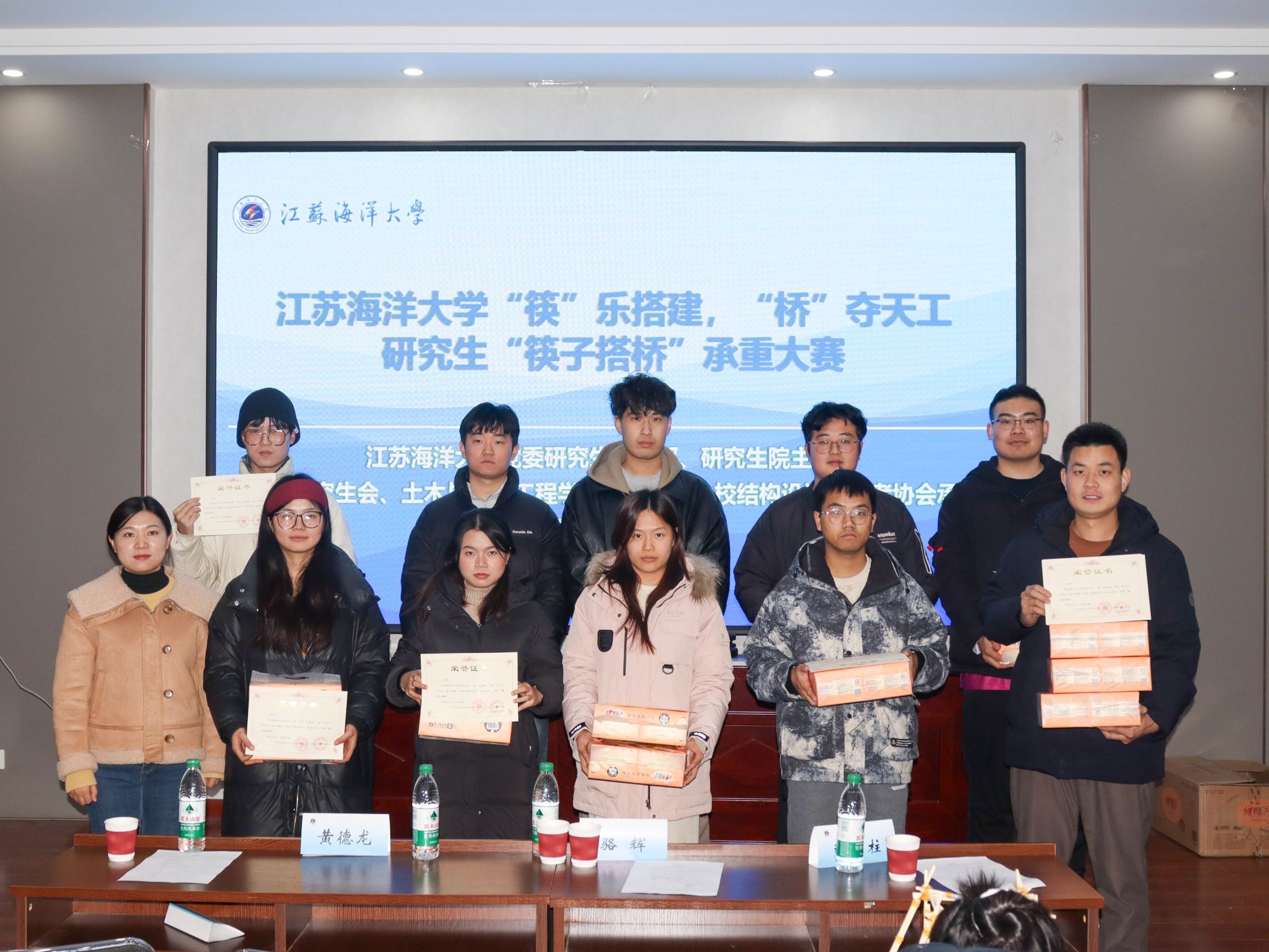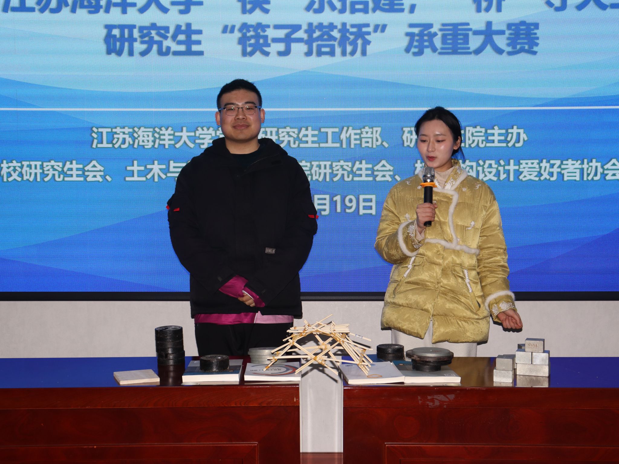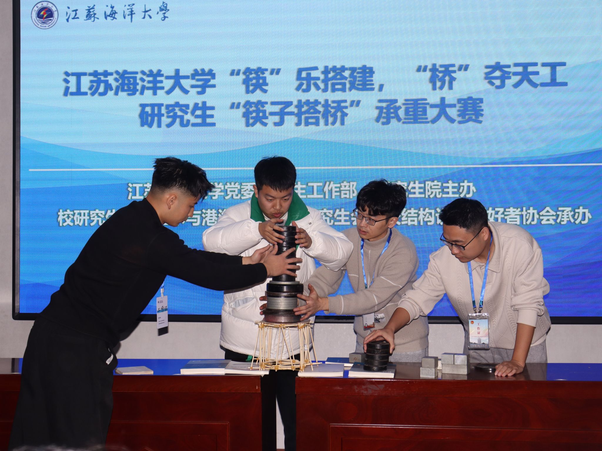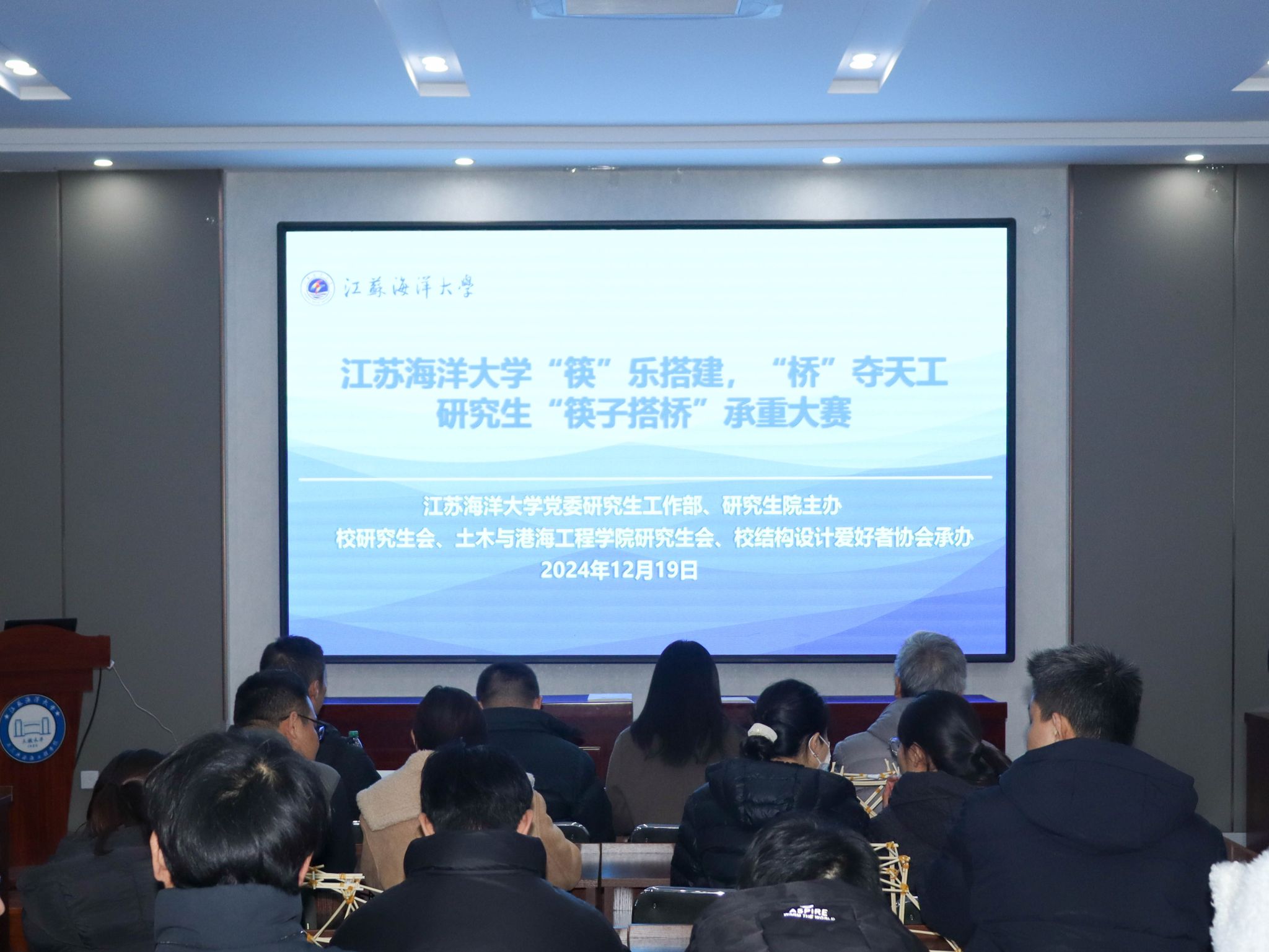 2024年12月19日下午,由江苏海洋大学党委研究生工作部、研究生院主办,校研究生会、土木与港海工程学院研究生会和校结构设计爱好者协会共同承办的江苏海洋大学第一届“‘筷’乐搭建,‘桥’”夺天工”研究生“筷子搭桥”承重大赛在土木楼207会议室成功举办。此次大赛旨在进一步弘扬研究生的创新精神,提升研究生的创新思维、动手能力和团队合作意识,促进校园文化的多元化发展。