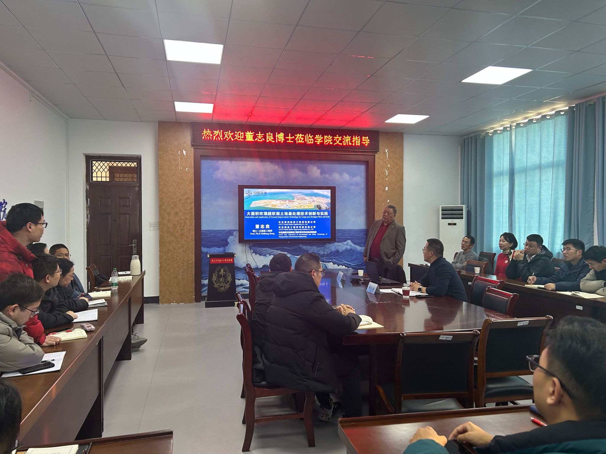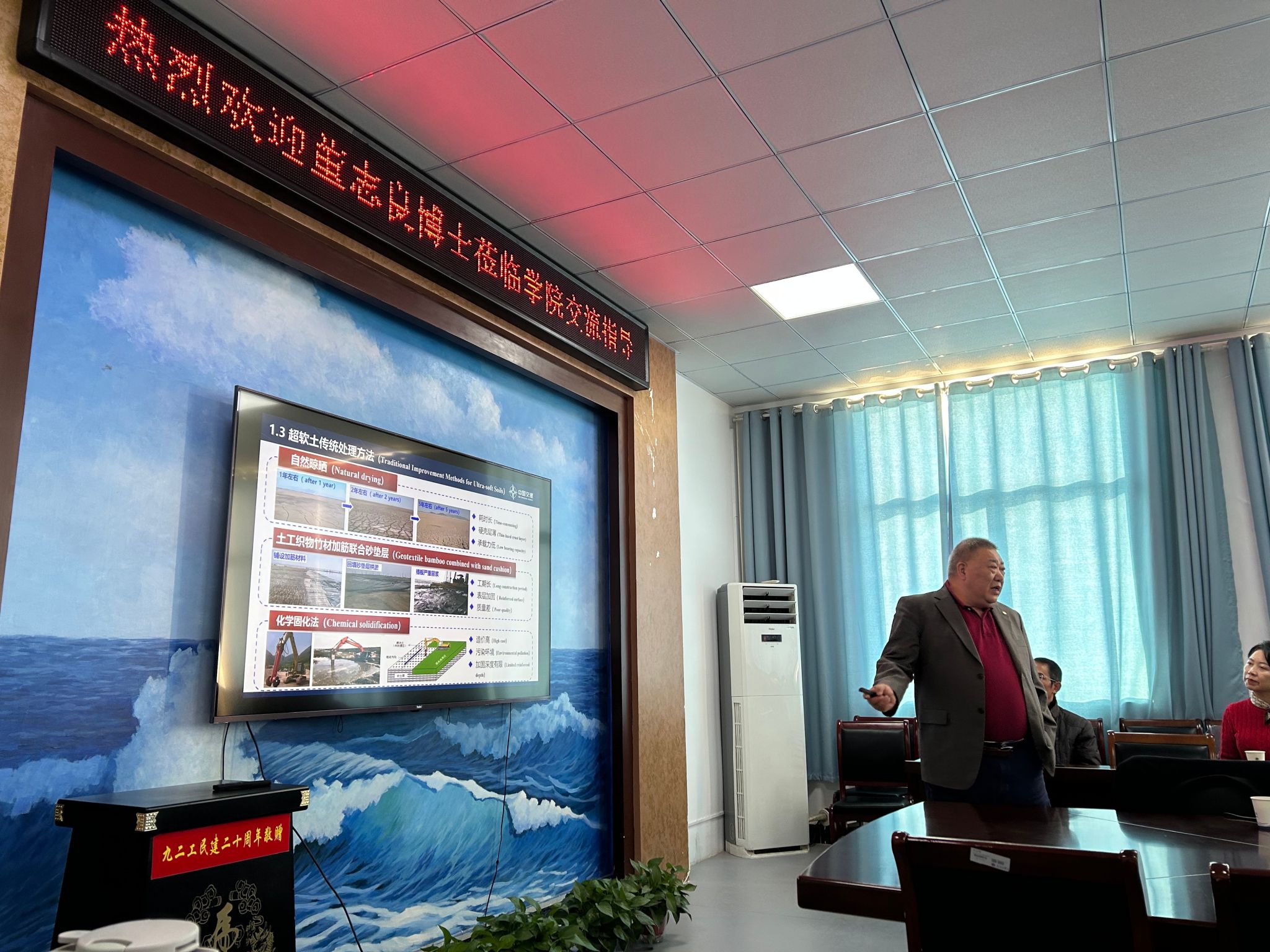 为加强学院师生在海洋岩土工程领域的创新意识和能力,激发学习兴趣和研究热情,2025年2月19日下午,江苏海洋大学土木与港海工程学院在土木楼302会议室举办学术讲座,特别邀请到中交四航局首席专家董志良博士,带来了题为“大面积超软弱土地基处理技术创新与实践”的精彩报告。学院专任教师和研究生共60余人参加了报告会,会议由院长朱文谨主持。