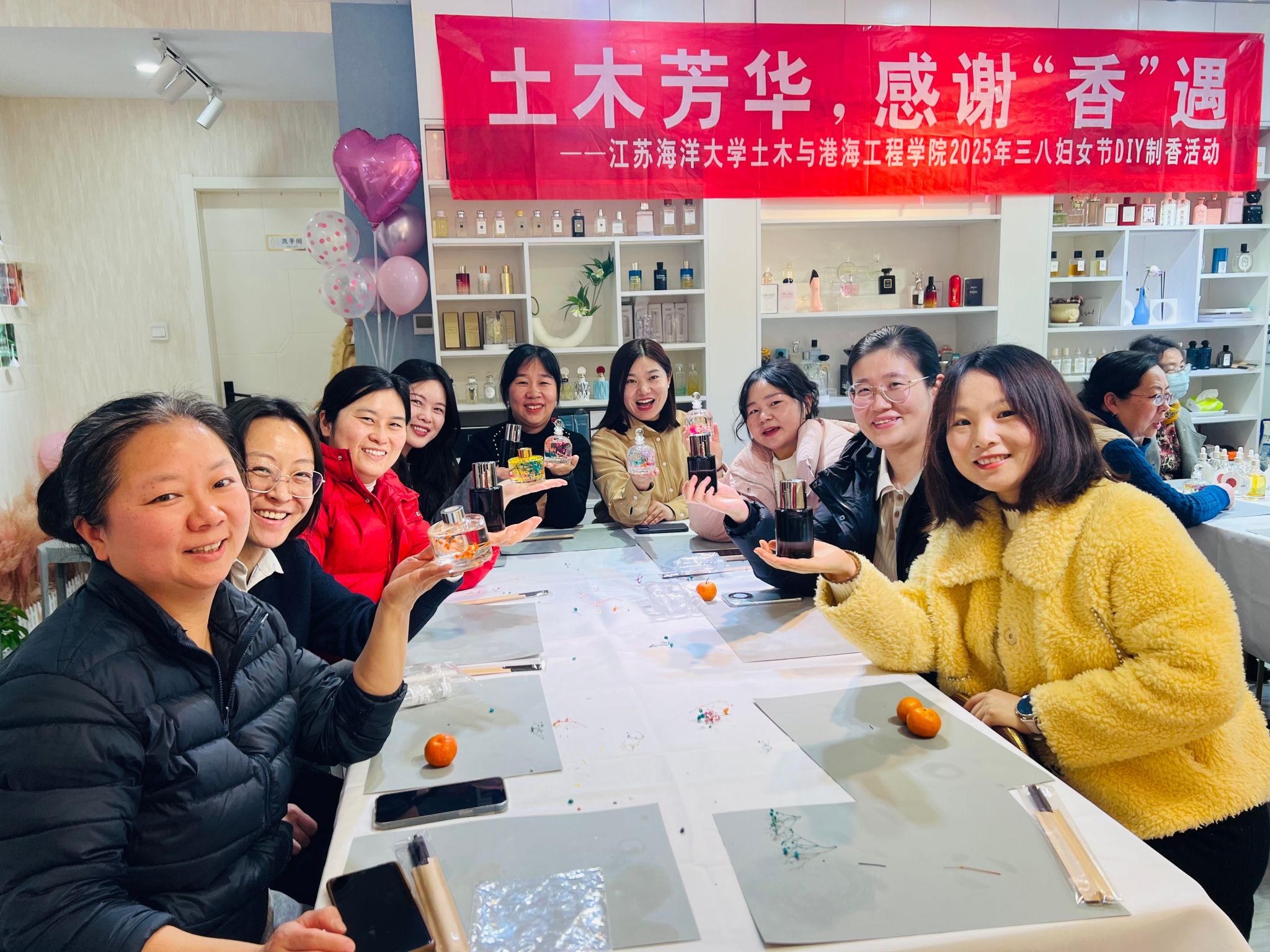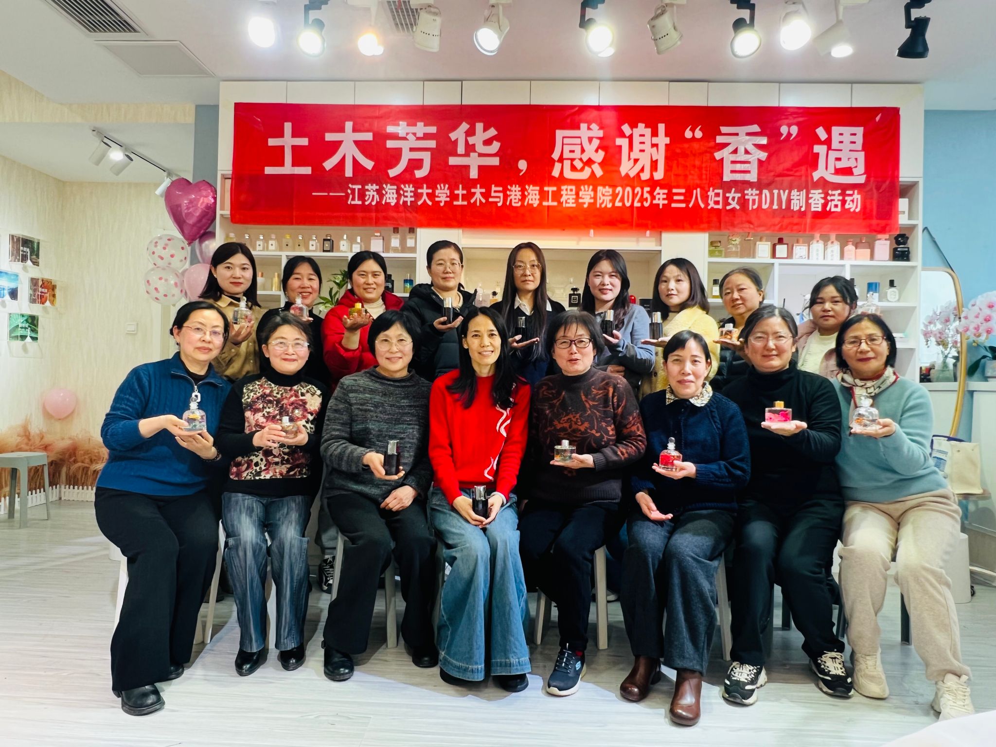 为庆祝“三八”国际妇女节,丰富女教师精神文化生活,3月7日下午,土木与港海工程学院分工会精心策划了“土木芳华,感谢‘香’遇”DIY制香主题活动。学院在职及部分离退休女教师同赴连云港陈香见香氛工作室参加活动。活动伊始,学院党委书记王改红向全体教师致以节日祝福,充分肯定她们在教学、科研及管理岗位上的贡献,并对退休教师长期支持学院发展表达敬意与感谢。