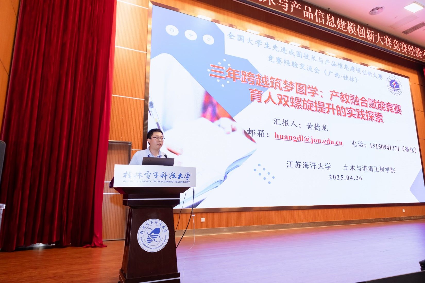 2025年4月26日,全国大学生先进成图技术与产品信息建模创新大赛竞赛经验交流会在桂林电子科技大学成功举办,来自国内100余所高校的指导教师齐聚一堂,解读第十八届先进成图大赛竞赛大纲,共同探讨竞赛指导与图学课程教学的创新路径。我院教师黄德龙受邀分享了参赛及制图课程改革经验。