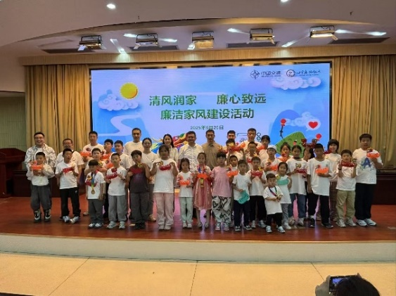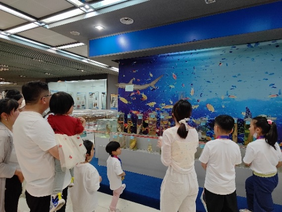 在亲子趣味游戏结束后,活动进入"文化+科普"实践环节。江苏海洋大学黄海厅内,校企联合打造的"清风润家,廉心致远"廉洁家风建设专题活动同步展开。通过"观看动画短片,展示廉洁故事、亲子竞猜廉洁诗词、亲子共绘廉洁童画"三重体验,以趣味形式传递清廉文化。随后家长们带着孩子们跟随志愿者前往江苏海洋大学海洋馆,在讲解员带领下观察珍稀海洋生物标本,解锁“海洋生态保护”科普知识。此次活动创新采用"文化浸润+科普启蒙"双线推进模式,既有廉洁诗词与传统手作的文明传承,也有生态科学与前沿技术的直观呈现。校企双方表示,未来将持续深化合作,将工程建设的家国情怀与海洋强国的时代使命融入更多场景,通过可触可感的实践教育,让文化基因与科学精神在下一代心中共生共长。