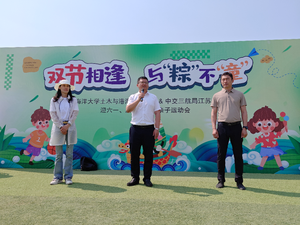 当六一国际儿童节与端午佳节相遇,童心与传统文化碰撞出别样火花。2025年5月25日,江苏海洋大学土木与港海工程学院与中交三航局江苏分公司在校园内联合举办“双节相逢,与‘粽’不‘童’”主题庆祝活动。活动通过趣味亲子游戏、传统文化体验与科普实践等环节,为职工家庭与高校师生搭建亲子互动平台,深化校企合作内涵,共话文化传承与人才培养。