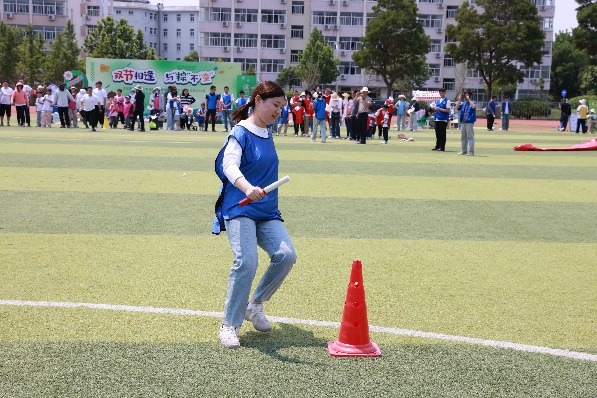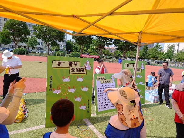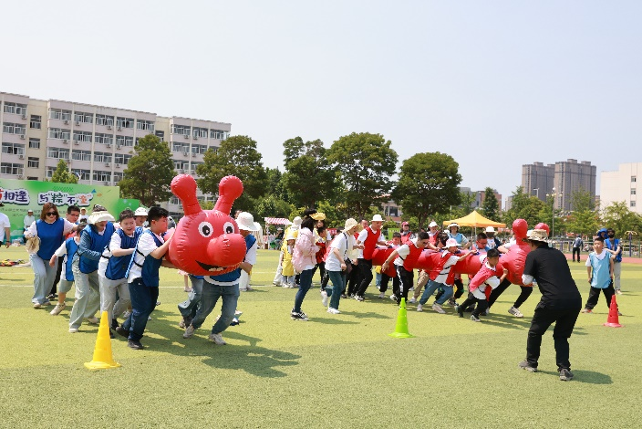 开幕式后,趣味游戏活动在欢声笑语中拉开帷幕,家庭亲子游戏区成为孩子们的主场。家长与孩子们组成“亲子战队”,在志愿者的引导下参与六大游戏项目:1.“套大鹅”挑战赛:萌娃们手持彩色圆环,瞄准摇摆的“大鹅”模型,欢呼声与加油声此起彼伏;2.“蛇五毒”射箭体验:儿童版弓箭靶场前,孩子们屏息凝神,体验传统射艺的乐趣;3.草帽创意绘画:家长与孩子共同执笔,绘制端午主题草帽,龙舟、螃蟹等图案跃然帽上,成为节日限定纪念品;4.“坦克战车”竞速:家长与孩子们协同推动“履带战车”,上演速度与智慧的较量;5.“毛毛虫快跑”:六组家庭手持充气毛毛虫道具,在协力冲刺中感受团队默契;6.亲子接力赛:跨越障碍、传递粽子道具,将活动气氛推向高潮。此次比赛既充满竞技趣味,又深化了校企双方的互动交流,为未来产学研合作注入活力。