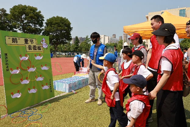 上午9时,活动在江苏海洋大学西操场正式开幕。主持人以双节相逢,与“粽”不“童”为主题开场,介绍活动背景与流程。随后,土木与港海工程学院党委书记王改红与中交三航局江苏分公司党委副书记、纪委书记、工会主席刘祺分别致辞。王改红表示:“校企联合举办活动,既是党建引领下的深度合作,也是为孩子们播撒科学与文化种子的实践平台。”刘祺强调:“希望孩子们在游戏中感受团队精神,在探索中激发创新思维,尽情享受活动的乐趣与美好。”