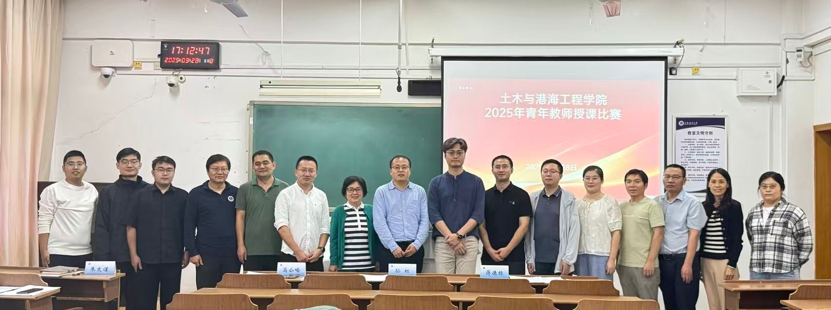 为深入学习贯彻习近平总书记关于教育的重要论述,进一步激发青年教师更新教育理念和掌握现代教学方法的热情,推动学院院高素质、专业化、创新型青年教师队伍建设,9月28日下午,土木与港海工程学院在文通楼411室举办了2025年青年教师授课比赛。校教学督导成员孙虹、学院领导及教学督导担任评委。比赛由副院长蔡小宁主持。